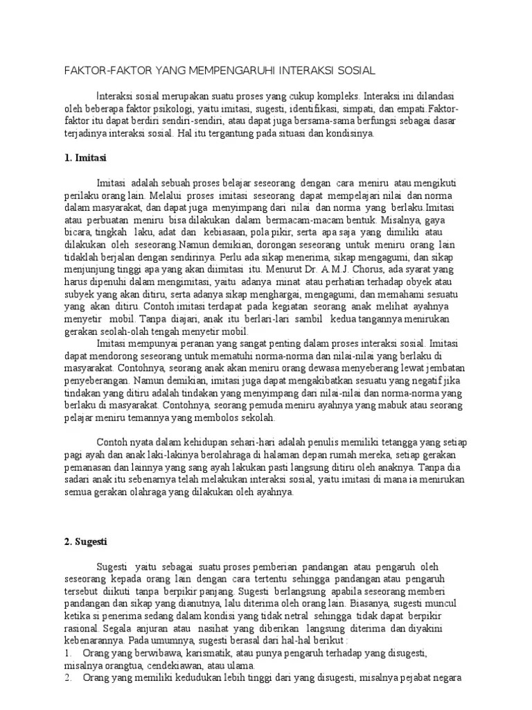 Faktor pendorong setiap orang yang tergerak tanpa berpikir panjang lagi setelah menyaksikan iklan . Faktor pendorong interaksi sosial ini terdiri dari imitasi, identifikasi, empati, simpati, sugesti, dan motivasi, yang turut mempengaruhi terjadinya proses . Imitasi,sugesti,identifikasi, simpati dan empati sehingga peserta didik dapat. Lencana tidak terkunci yang menunjukkan sepatu bot . 1 interaksi sosial interaksi sosial adalah suatu hubungan antara dua orang atau lebih, di mana perilaku atau tindakan se.