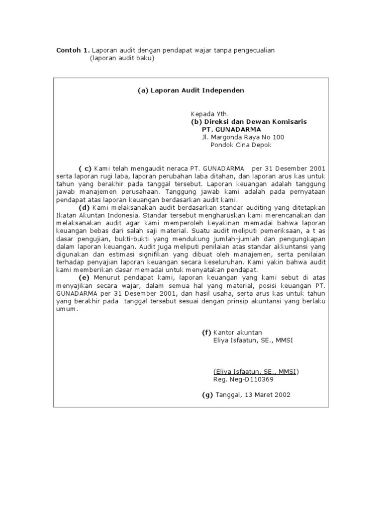 Contoh Kasus Audit Laporan Keuangan Perusahaan - 5 Jenis Opini Audit Plus Contoh Lengkapnya Hukum Line - Bangun admaja & ludovicus sensi w.